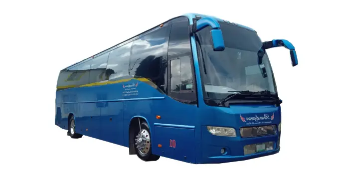 El Volvo de 46 plazas ofrece tecnología avanzada y confort superior, perfecto para viajes largos con grupos grandes.